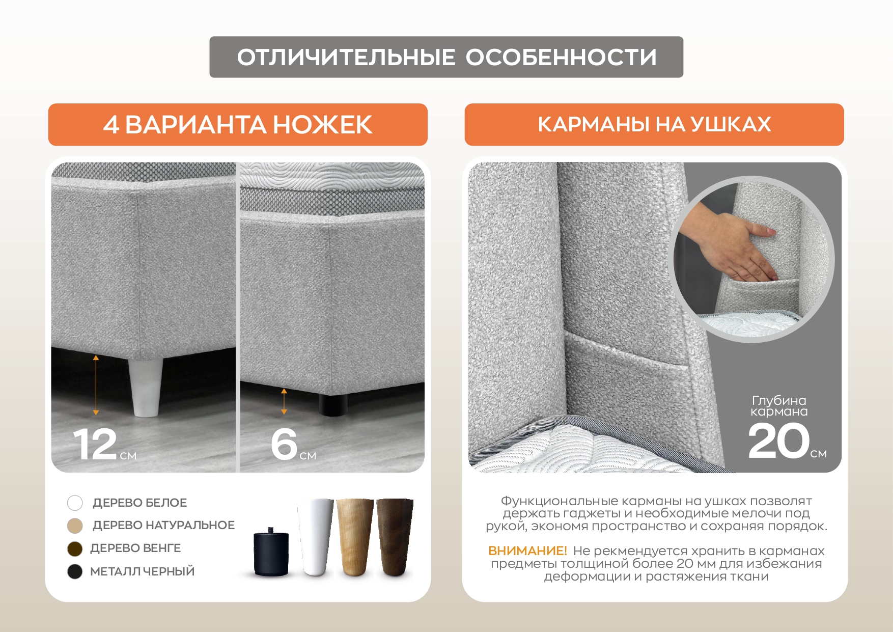 Углубление под матрас: 95 мм