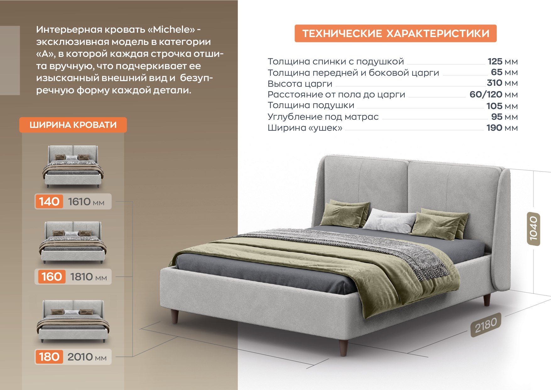 160 x 200: 1810 х 2180 х 1040