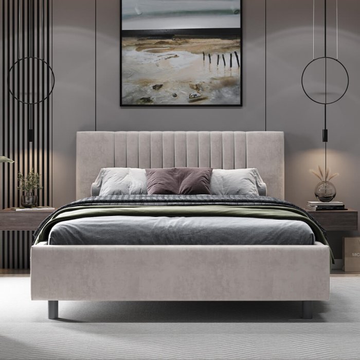 - Дизайн с вертикальными линиями изголовья, разбавят монотонность интерьера.