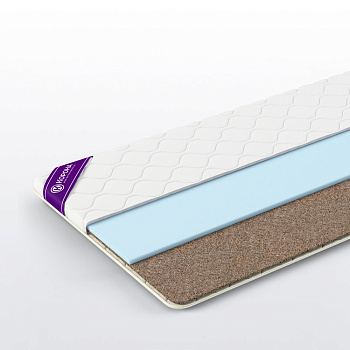 Самая популярная модель, применяемая в основном для раскладных диванов. Кокосовая койра сглаживает неровности и перепады в жесткости между раскладными секциями дивана, делая спальное место более ровным. Гипоаллергенный пенополиуретан, в качестве комфортного наполнителя, хорошо держит весовую нагрузку, не проседает и обеспечивает комфортную поддержку. Во избежание образования заломов и деформации наполнителей данный топпер запрещено скручивать и сгибать.