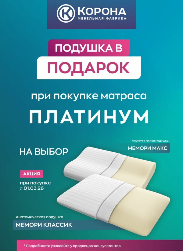 С 01.03.2026 при покупке матраса любой модели серии «ПЛАТИНУМ»